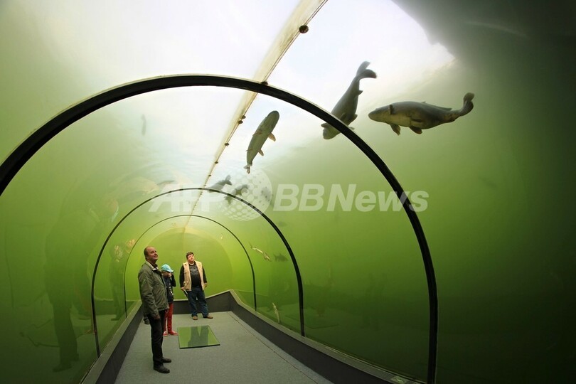 【10月3日 AFP】チェコ・南モラバ(South Moravia)州の都市ブルノ(Brno)から南東へ70キロほど離れたマドラ(Madra)には、湖の中に作られた透明な壁を持つトンネルがある。長さ8メートルほどのこのトンネルは、深さ3メートルの位置にあり、窓の外を泳ぐチョウザメやコイ、ナマズ、マスやウナギなどを観察することができる。(c)AFP