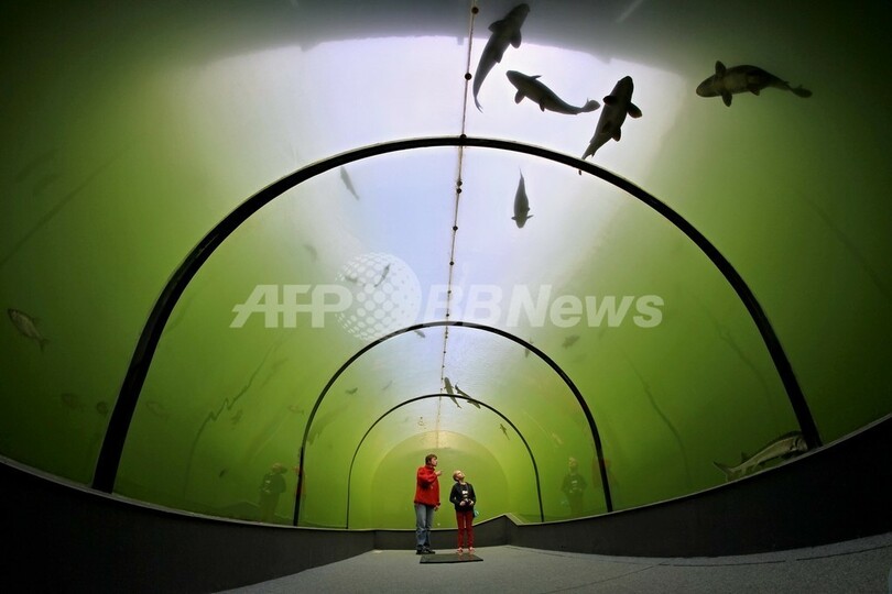 【10月3日 AFP】チェコ・南モラバ(South Moravia)州の都市ブルノ(Brno)から南東へ70キロほど離れたマドラ(Madra)には、湖の中に作られた透明な壁を持つトンネルがある。長さ8メートルほどのこのトンネルは、深さ3メートルの位置にあり、窓の外を泳ぐチョウザメやコイ、ナマズ、マスやウナギなどを観察することができる。(c)AFP
