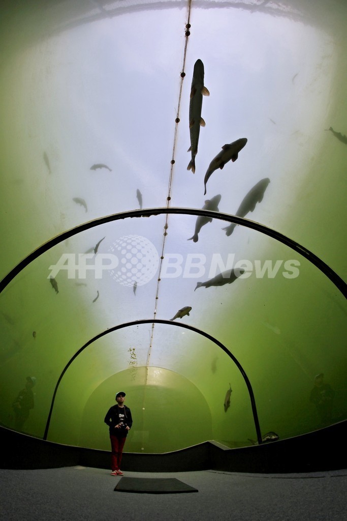【10月3日 AFP】チェコ・南モラバ(South Moravia)州の都市ブルノ(Brno)から南東へ70キロほど離れたマドラ(Madra)には、湖の中に作られた透明な壁を持つトンネルがある。長さ8メートルほどのこのトンネルは、深さ3メートルの位置にあり、窓の外を泳ぐチョウザメやコイ、ナマズ、マスやウナギなどを観察することができる。(c)AFP
