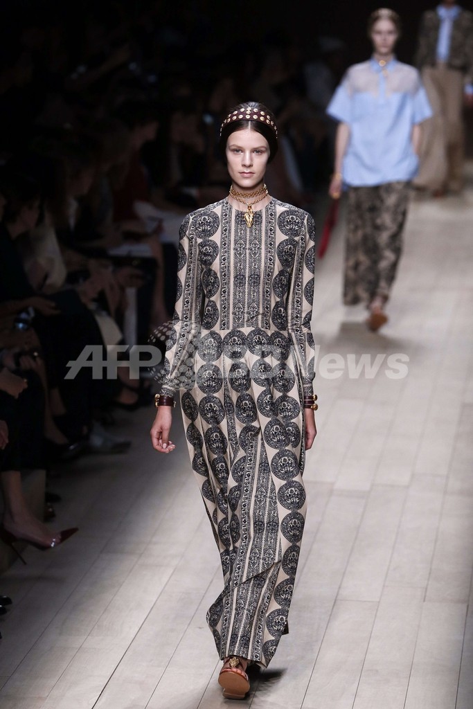 1日、マリア・グラツィア・キウリ(Maria Grazia Chiuri)とピエールパオロ・ピッチョーリ(Pierpaolo Piccioli)が手がける「ヴァレンティノ(Valentino)」が新作を発表した。(c)AFP