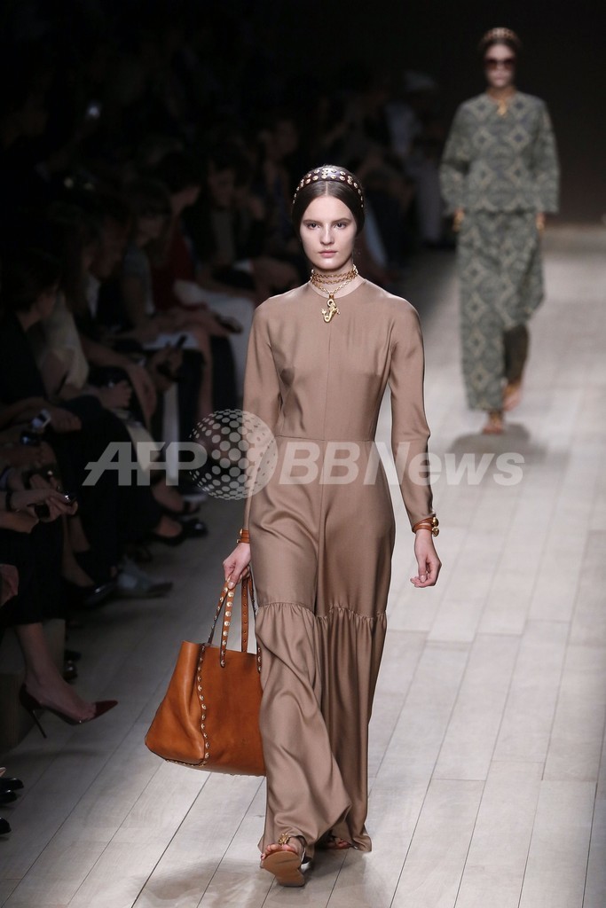 1日、マリア・グラツィア・キウリ(Maria Grazia Chiuri)とピエールパオロ・ピッチョーリ(Pierpaolo Piccioli)が手がける「ヴァレンティノ(Valentino)」が新作を発表した。(c)AFP