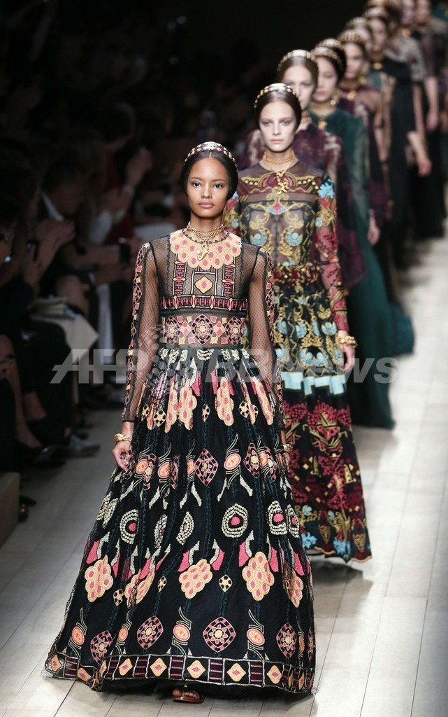 1日、マリア・グラツィア・キウリ(Maria Grazia Chiuri)とピエールパオロ・ピッチョーリ(Pierpaolo Piccioli)が手がける「ヴァレンティノ(Valentino)」が新作を発表した。(c)AFP