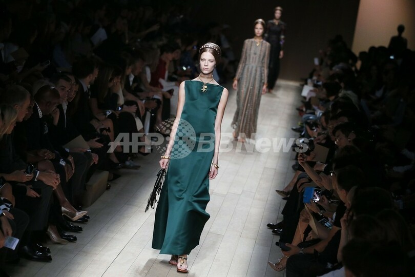1日、マリア・グラツィア・キウリ(Maria Grazia Chiuri)とピエールパオロ・ピッチョーリ(Pierpaolo Piccioli)が手がける「ヴァレンティノ(Valentino)」が新作を発表した。(c)AFP