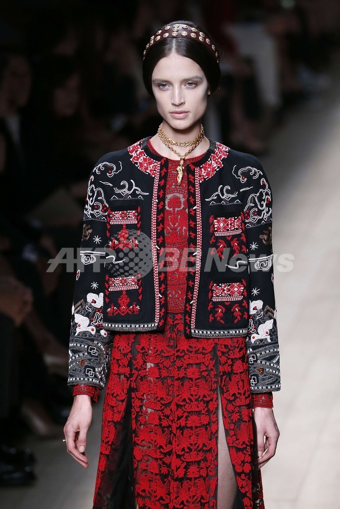 1日、マリア・グラツィア・キウリ(Maria Grazia Chiuri)とピエールパオロ・ピッチョーリ(Pierpaolo Piccioli)が手がける「ヴァレンティノ(Valentino)」が新作を発表した。(c)AFP