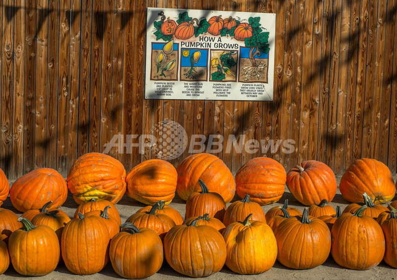 【10月3日 AFP】米カリフォルニア(California)州ウッドランドヒルズ(Woodland Hills)にある、農業をテーマにしたアミューズメントパーク「ピアス・カレッジ・ファーマーズ・マーケット(Pierce College Farmer's Market)」で1日、まもなく迎えるハロウィーンに向けて続々と集荷された大量のカボチャが並んでいる様子が見られた。(c)AFP