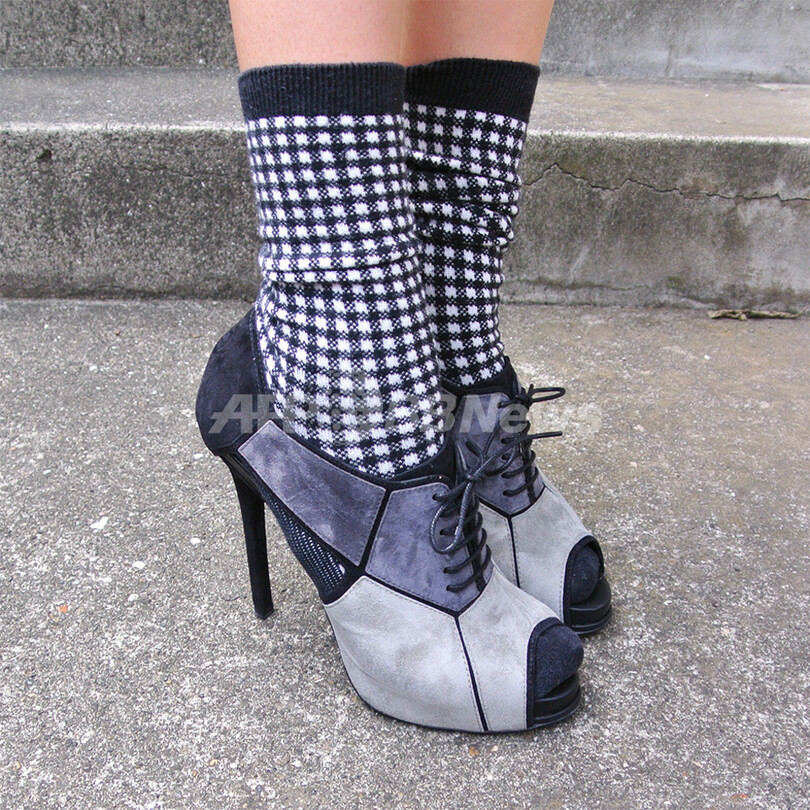今週も「Roger Vivier」の新作シューズをテーマにお届けします。ショルダー部分がチュールになったタートルネックのニットワンピースに千鳥柄のソックスを合わせてトレンドのスタイルに。