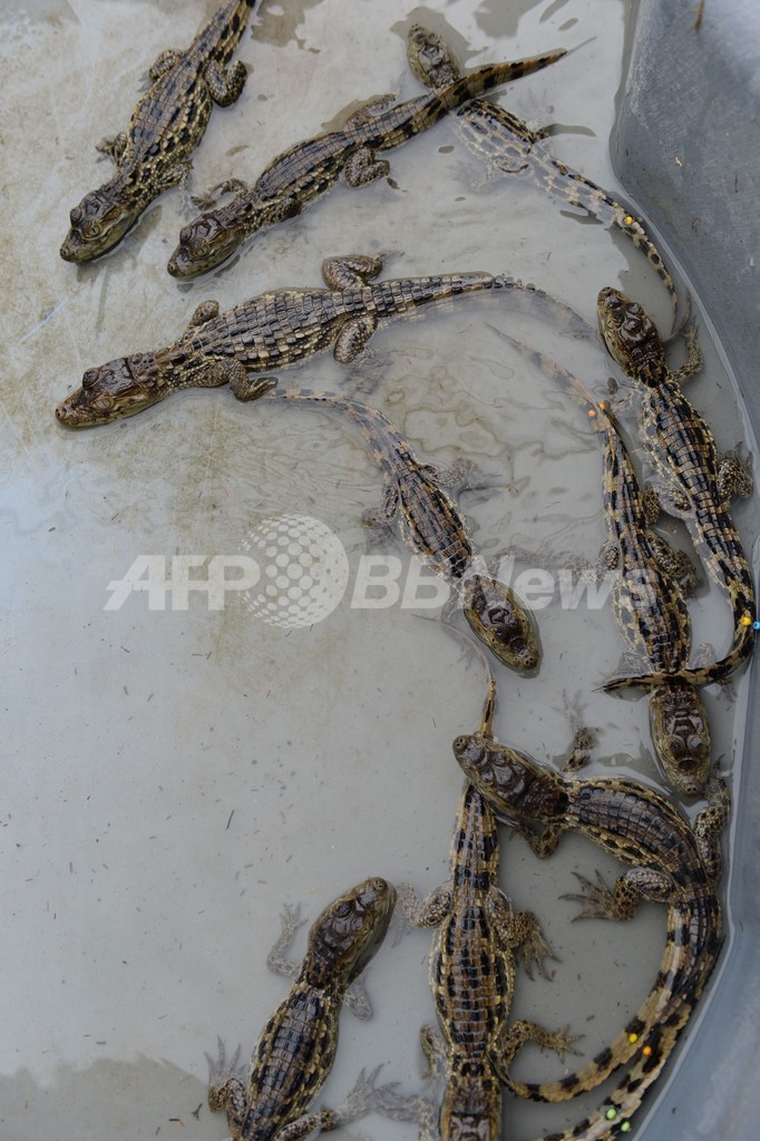 【10月5日 AFP】キリスト教の「アッシジの聖フランシスコ(Saint Francis of Assisi)を記念する日」であり、「世界動物デー(World Animal Day)」でもある4日、ブラジル・リオデジャネイロ(Rio de Janeiro)にあるリオデジャネイロ動物園(Rio de Janeiro Zoo)で誕生して間もないクチヒロカイマンの赤ちゃんが公開された。(c)AFP