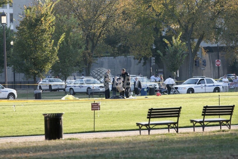 米首都ではこのところ、街中を震撼(しんかん)させる事件が相次いでいる。3日には、34歳の女がホワイトハウス(White House)周辺を自動車で暴走して警察に射殺された。また数週間前の9月16日には、海軍施設で銃乱射事件が発生し12人が殺害されている。(c)AFP