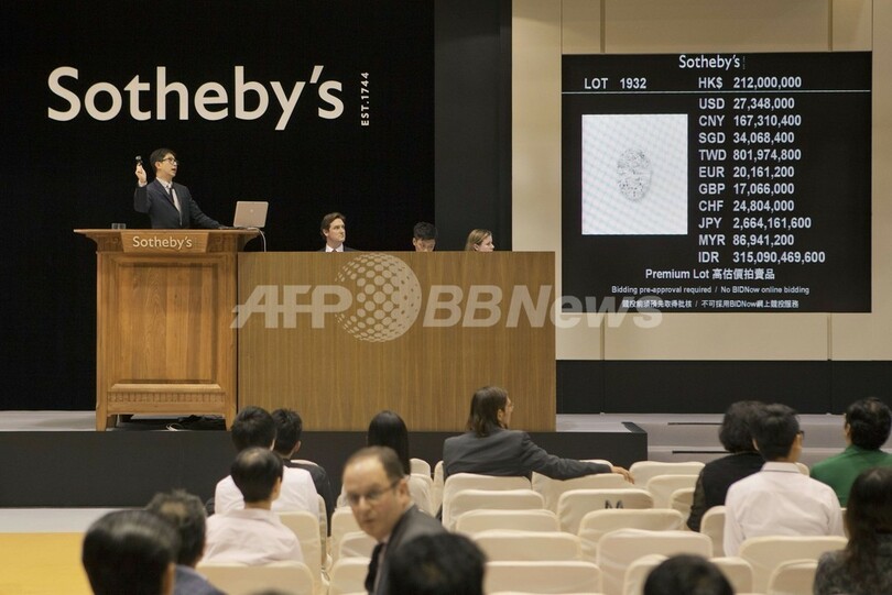 ニュース ライフ 118カラットのホワイトダイヤに史上最高額、香港 2013年10月8日 8:40 発信地:香港 このニュースをシェア ‹ › ❮ 2/7 ❯ 香港(Hong Kong)で行われたオークションで、新記録となる3060万ドル(約29億7000万円)で落札されたホワイトダイヤの取引成立を確認するサザビーズ(Sotheby's)の競売人(左、2013年10月7日撮影)。(c)AFP/ANTHONY WALLACE 画像作成中 ! 【10月8日 AFP】118.28カラットを誇るホワイトダイヤが7日、香港(Hong Kong)で開催されたサザビーズ(Sotheby's)のオークションに出品され、新記録となる3060万ドル(約29億7000万円)もの値をつけた。輝くばかりのこのダイヤモンドは、オークションが開始されてから6分後、電話で参加していた匿名の入札者によって落札されたという。(c)AFP ライフ 一覧へ> メディア・報道関係・法人の方向け 写真・動画 購入のお問合せ>
