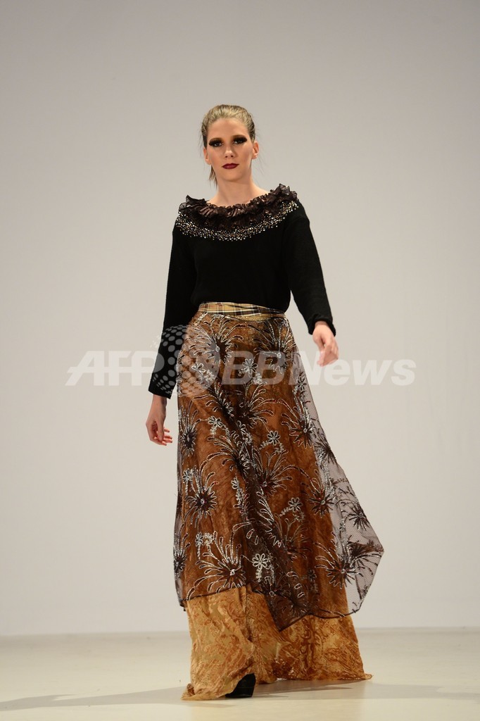 【10月9日 MODE PRESS】ハンガリーのブダペスト(Budapest)にあるブダペスト応用美術館(Museum of Applied Arts)で5日、ハンガリー人デザイナーのMarta Makanyが新作を発表した。(c)AFP