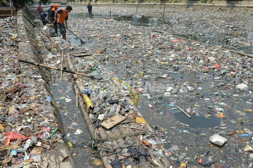今年6月に同国環境省が発表した報告書によれば、2008~12年の調査で対象となった国内の52の河川のうち、実に82%が家庭ごみや産業廃棄物によって汚染されていることが分かった。報告書によると河川の水質は国内各地で低下しており、とりわけリアウ(Riau)、ジャンビ(Jambi)、中ジャワ(Central Java)、東ヌサトゥンガラ(East Nusa Tenggara)、東南スラウェシ(Southeast Sulawesi)、マルク(Maluku)の各州で深刻だという。(c)AFP