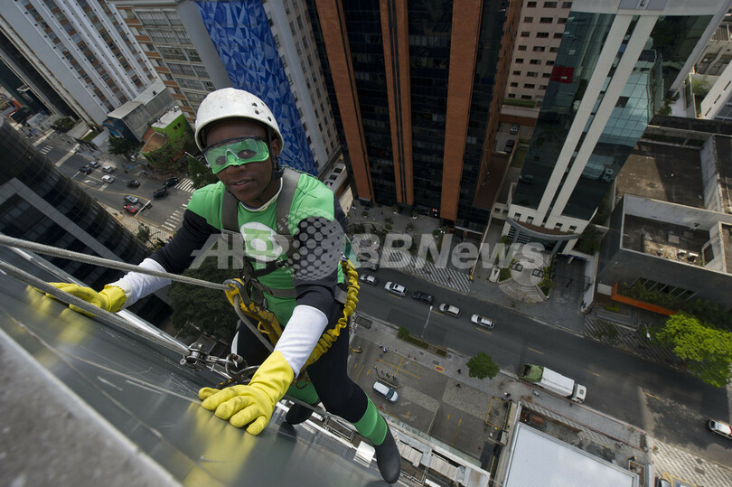 病院の窓ふきするスーパーヒーロー、ブラジル