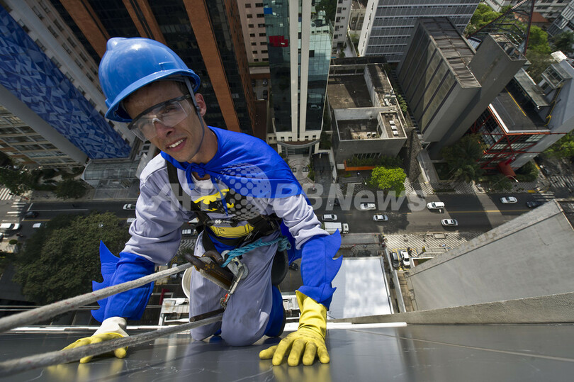 病院の窓ふきするスーパーヒーロー、ブラジル