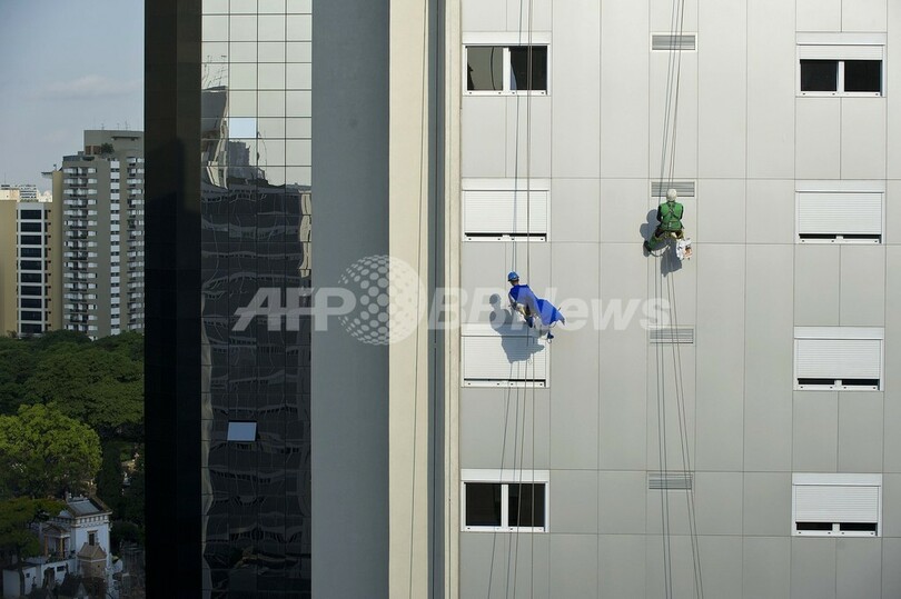 病院の窓ふきするスーパーヒーロー、ブラジル