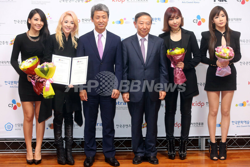 【10月14日 STARNEWS】韓国のガールズグループ「2NE1」がソウル(Seoul)の大韓貿易投資振興公社(KOTRA)で10日、「コリアブランド&2013韓流商品総合博覧会(Korea Brand & Entertainment Expo)」の広報大使に任命された。(c)STARNEWS
