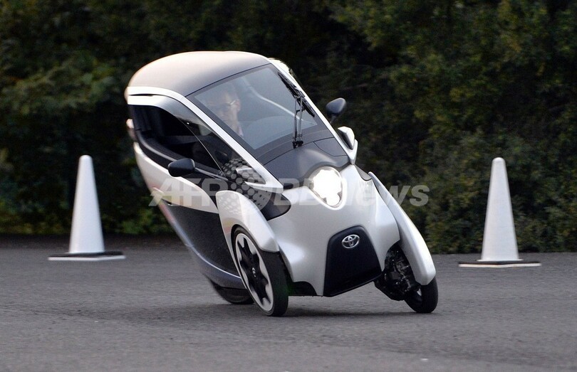 この技術を採用した車両は、前後を走行する車が互いに0.1秒に1度の頻度で通信しながら安全な車間距離を保ち、適正な走行ラインに沿って走行できるという。この日は超小型電気自動車や燃料電池車のプロトタイプも公開された。(c)AFP