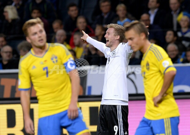 【10月16日 AFP】2014年サッカーW杯ブラジル大会(2014 World Cup)の欧州予選は15日、各地で試合が行われ、グループCのドイツは5-3でスウェーデンに勝利した。