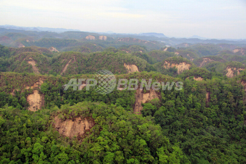 ボホール島では建物だけでなく自然の観光スポットなどにも被害が出ており、丘が連なる景観で有名なタグビララン(Tagbilaran)の 「チョコレート・ヒルズ(Chocolate Hills)」でも地震による浸食被害が出ている。(c)AFP