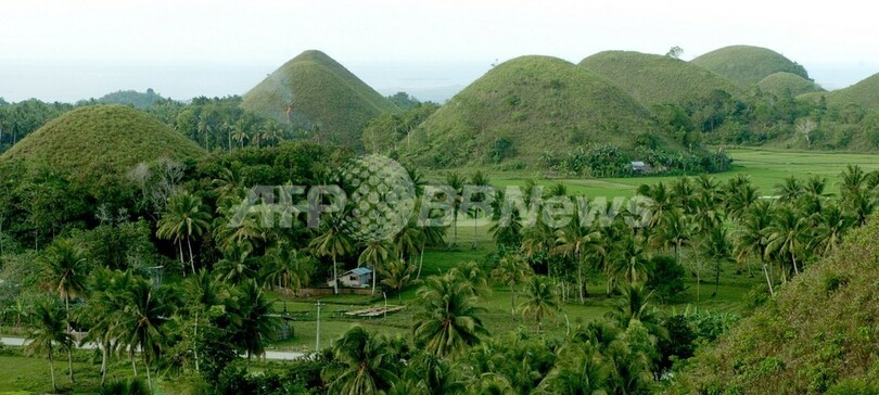 ボホール島では建物だけでなく自然の観光スポットなどにも被害が出ており、丘が連なる景観で有名なタグビララン(Tagbilaran)の 「チョコレート・ヒルズ(Chocolate Hills)」でも地震による浸食被害が出ている。(c)AFP
