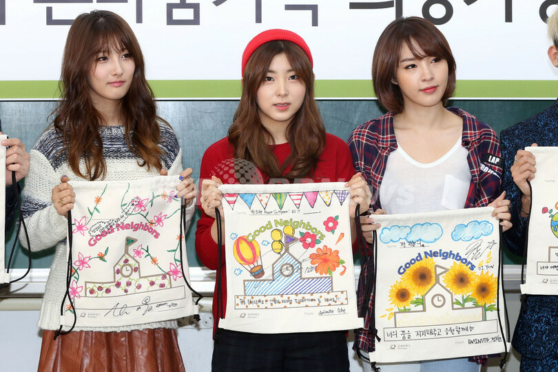 【10月18日 STARNEWS】韓国・ソウル(Seoul)市内の高校で16日、国際救護開発を支援するNGO団体「グッドネイバーズ(GoodNeighbors)」主催で「希望カバン作り」キャンペーンが行われ、ガールズグループ「フォーミニッツ(4Minute)」とアイドルグループ「ビートゥービー(BToB)」が出席した。このイベントは、10月17日の「貧困撲滅のための国際デー(International Day for the Eradication of Poverty)」に向けて、希望メッセージが書かれた希望カバンを開発途上国に送るキャンペーン。(c)STARNEWS