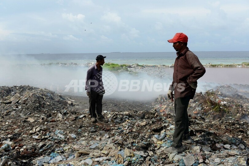 首都マレ(Male)から船で約30分、世界の富裕層や有名人がハネムーンを楽しむ他の島々と同じ白い砂浜と澄んだ海に囲まれたティラフシ島(Thilafushi Island)の島内には、ゴミの山が広がる。この光景にはモルディブのリゾート産業にも大きな責任がある。政府統計によれば、マレの住民が排出するゴミの量が1日平均2.8キロなのに対し、観光客の残すゴミは同7.2キロにも上る。