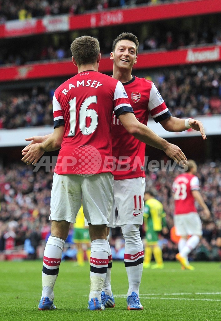 本拠地エミレーツ・スタジアム(Emirates Stadium)にノリッジを迎えたアーセナルは、メスト・エジル(Mesut Ozil)が2得点を挙げる活躍を見せ、リーグ首位を守った。