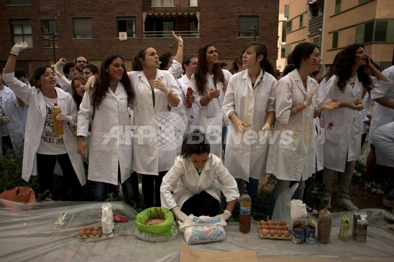 手荒い歓迎で新入生ドロドロ、医学部伝統の「儀式」 スペイン