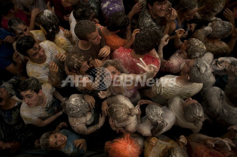 【10月18日 AFP】スペインのグラナダ大学(University of Granada)で17日、医学部の新入生たちに向かって在校生が一斉に飲食物を投げつける毎年恒例のイベントが開かれた。