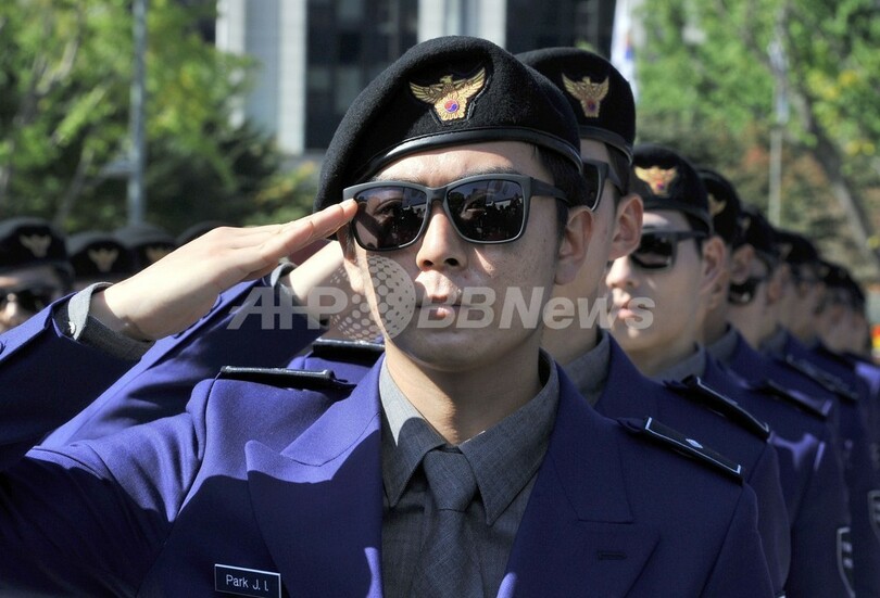 【10月19日 AFP】韓国・ソウル(Seoul)で16日、観光客をぼったくり被害などから守る「観光警察隊」が発足し、光化門(Gwanghwamun)広場で出発式が行われた。スタイリッシュな制服は、「江南スタイル(Gangnam Style)」が世界で大ヒットした歌手、PSY(サイ)さんの衣装デザイナーが手がけた。(c)AFP