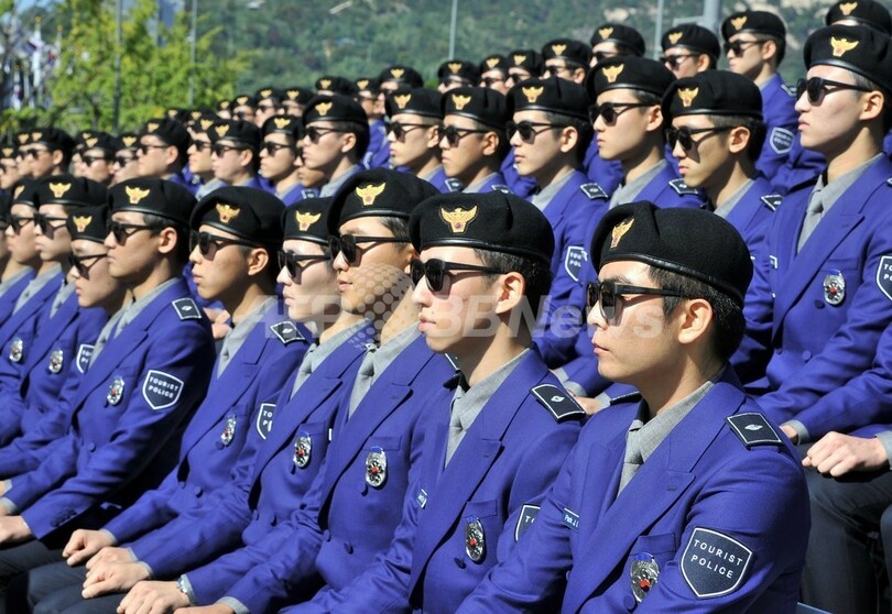 【10月19日 AFP】韓国・ソウル(Seoul)で16日、観光客をぼったくり被害などから守る「観光警察隊」が発足し、光化門(Gwanghwamun)広場で出発式が行われた。スタイリッシュな制服は、「江南スタイル(Gangnam Style)」が世界で大ヒットした歌手、PSY(サイ)さんの衣装デザイナーが手がけた。(c)AFP