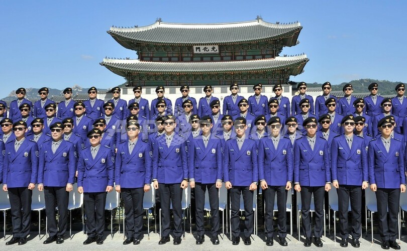 【10月19日 AFP】韓国・ソウル(Seoul)で16日、観光客をぼったくり被害などから守る「観光警察隊」が発足し、光化門(Gwanghwamun)広場で出発式が行われた。スタイリッシュな制服は、「江南スタイル(Gangnam Style)」が世界で大ヒットした歌手、PSY(サイ)さんの衣装デザイナーが手がけた。(c)AFP
