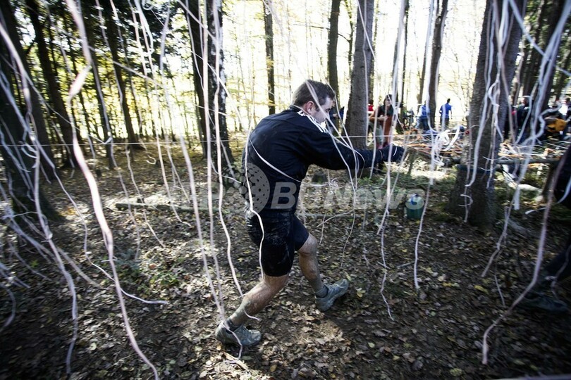 参加者たちは泥まみれになって、有刺鉄線や泥でできた壁などの障害物が設置された10~20キロのコースを走り抜けた。(c)AFP