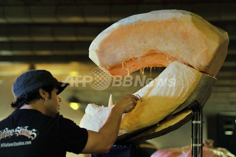 【10月21日 AFP】ニューヨーク(New York)のグランド・セントラル駅(Grand Central Terminal)で18日、著名なパンプキン彫刻家のレイ・ビラファーネ(Ray Villafane)さんを中心とするチームが、823キロの大きなかぼちゃに彫刻を施す作業を実演した。巨大な食虫植物や不可思議な生き物たちをかたどった一連の作品は、ニューヨーク・ブロンクス(Bronx)にあるニューヨーク植物園(New York Botanical Garden)にて19日と20日に開催されるイベント「Giant Pumpkin Carving Weekend」のために作成された。(c)AFP