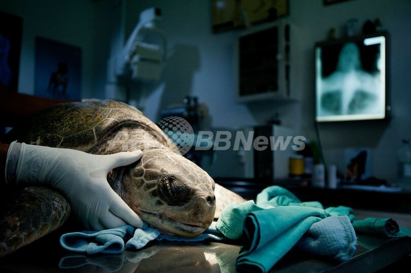 【10月22日 AFP】中米エルサルバドルのコスタデルソル(Costa del Sol)ビーチで保護されたウミガメが18日、同国首都サンサルバドル(San Salvador)で治療を受けた。