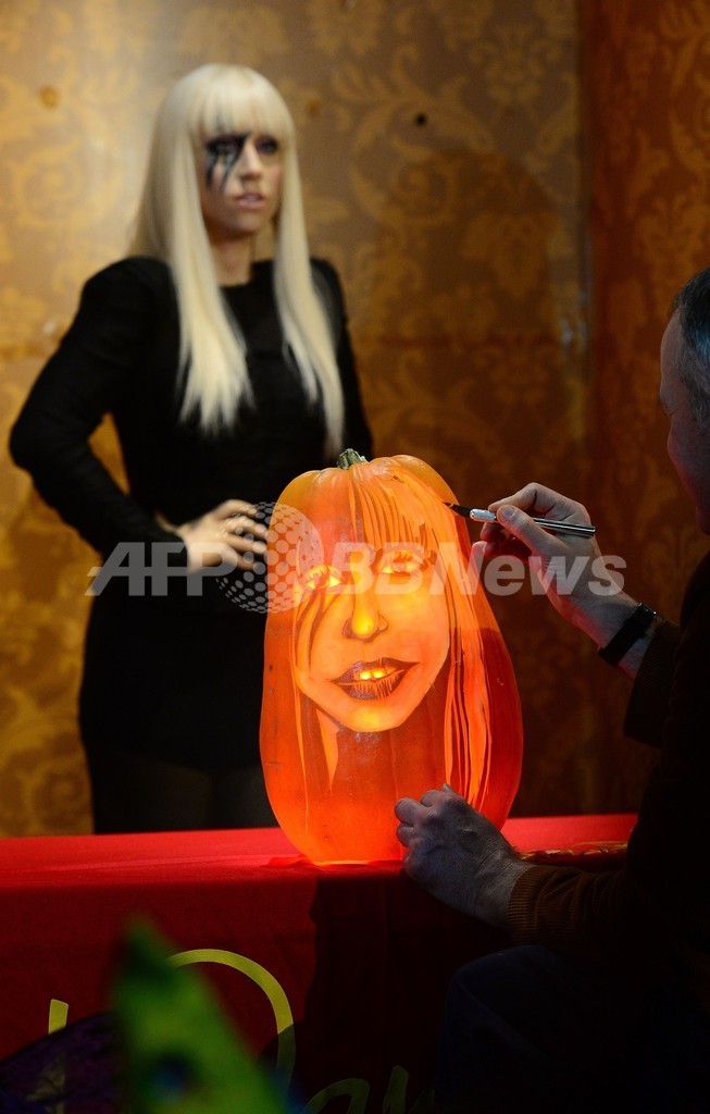 【10月23日 AFP】米ニューヨーク(New York)にあるマダム・タッソー(Madame Tussauds)ろう人形館では、ハロウィーンを間近に控え、世界の有名人たちの似顔絵が彫られたカボチャが展示されている。(c)AFP