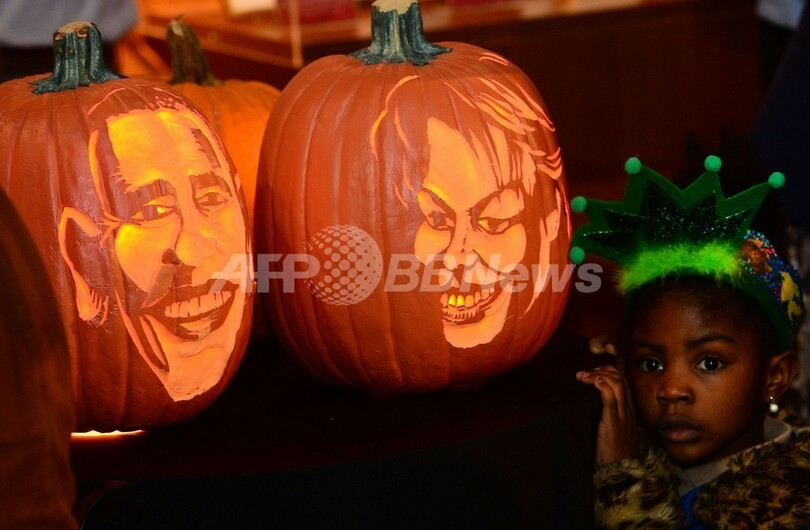【10月23日 AFP】米ニューヨーク(New York)にあるマダム・タッソー(Madame Tussauds)ろう人形館では、ハロウィーンを間近に控え、世界の有名人たちの似顔絵が彫られたカボチャが展示されている。(c)AFP