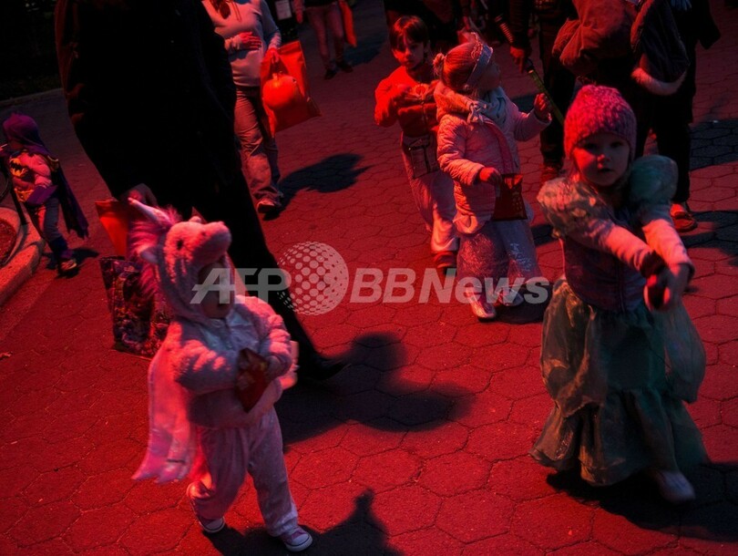 毎年10月31日に祝われるハロウィーンのお祭りは、古代ケルト人が収穫を祝い、死者を祭るために執り行っていた信仰的な儀式に由来するとされるが、現代では主に子どもたちのためのお祭りで、大人たちも仮装を楽しむための格好の口実となっている。(c)AFP