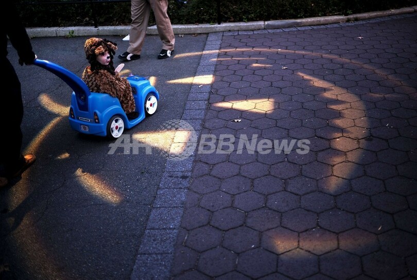 毎年10月31日に祝われるハロウィーンのお祭りは、古代ケルト人が収穫を祝い、死者を祭るために執り行っていた信仰的な儀式に由来するとされるが、現代では主に子どもたちのためのお祭りで、大人たちも仮装を楽しむための格好の口実となっている。(c)AFP