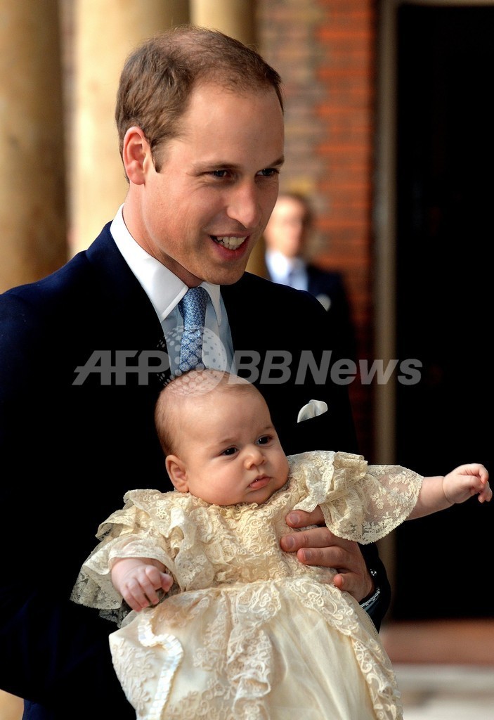 【10月24日 AFP】英国のジョージ王子(Prince George)の洗礼式が23日、ロンドン(London)中心部にあるセント・ジェームズ宮殿(St James's Palace)の礼拝堂で、両親のウィリアム王子(Prince William)とキャサリン妃(Catherine, Duchess of Cambridge)、および親族や親しい友人達のみが出席して執り行われた。非常に慎ましやかなスタイルで実施された今回の洗礼式は、7月22日に生まれたジョージ王子にとって誕生後に病院を出たとき以来、初めて公に姿を見せる機会となった。(c)AFP
