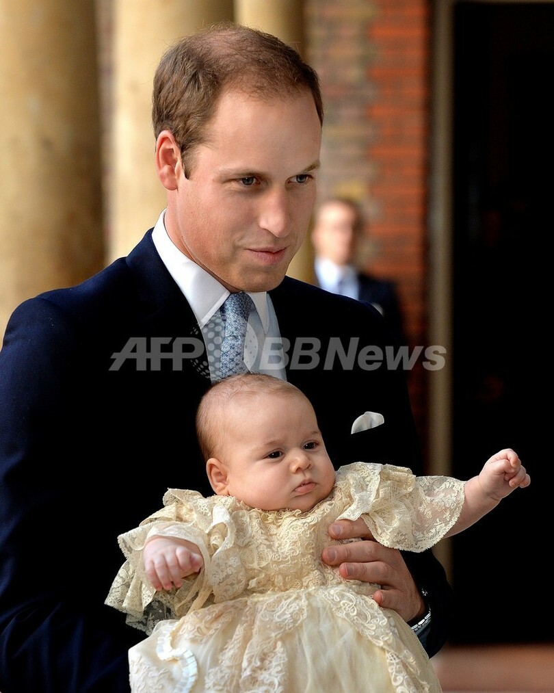 【10月24日 AFP】英国のジョージ王子(Prince George)の洗礼式が23日、ロンドン(London)中心部にあるセント・ジェームズ宮殿(St James's Palace)の礼拝堂で、両親のウィリアム王子(Prince William)とキャサリン妃(Catherine, Duchess of Cambridge)、および親族や親しい友人達のみが出席して執り行われた。非常に慎ましやかなスタイルで実施された今回の洗礼式は、7月22日に生まれたジョージ王子にとって誕生後に病院を出たとき以来、初めて公に姿を見せる機会となった。(c)AFP