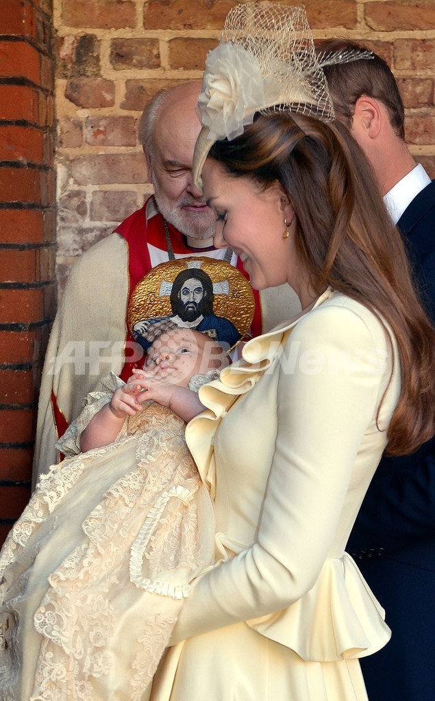 【10月24日 AFP】英国のジョージ王子(Prince George)の洗礼式が23日、ロンドン(London)中心部にあるセント・ジェームズ宮殿(St James's Palace)の礼拝堂で、両親のウィリアム王子(Prince William)とキャサリン妃(Catherine, Duchess of Cambridge)、および親族や親しい友人達のみが出席して執り行われた。非常に慎ましやかなスタイルで実施された今回の洗礼式は、7月22日に生まれたジョージ王子にとって誕生後に病院を出たとき以来、初めて公に姿を見せる機会となった。(c)AFP