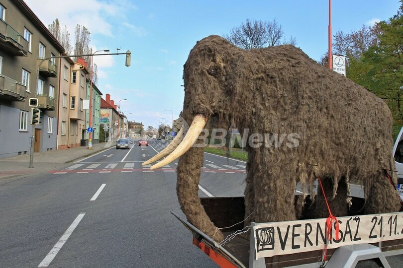 【10月26日 AFP】チェコ南東部ウヘルスケーフラジシュチェ(Uherske Hradiste)で23日、マンモスの実物大レプリカ像が街中に出現した。このレプリカは博物館に運ばれているところで、街行く人の視線を集めていた。ウヘルスケーフラジシュチェ周辺は、考古学的に貴重な発見が次々なされることで有名な地域であり、チェコで歴史的に最も重要な場所の1つとされている。(c)AFP