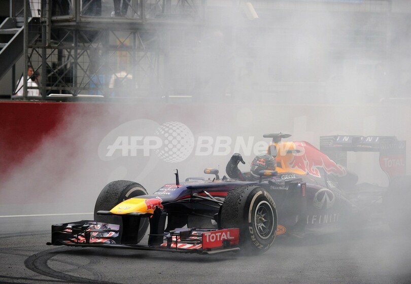 【10月28日 AFP】13F1第16戦インドGP(India Grand Prix 2013)で総合4連覇を達成したレッドブル(Red Bull)のセバスチャン・ベッテル(Sebastian Vettel)は27日、レース後にドーナツターンを披露したことなどを理由に戒告処分を受け、チームは2万5000ユーロ(約340万円)の罰金が科せられた。