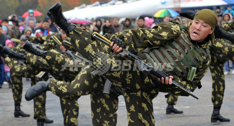 【10月28日 AFP】キルギスの首都ビシケク(Bishkek)から約20キロ離れたカント(Kant)で27日、旧ソ連邦共和国の7か国で構成する集団安全保障条約機構(Collective Security Treaty OrganisationCSTO)のロシア空軍基地設置10周年を記念する式典が行われ、戦闘機による航空ショーなどが披露された。(c)AFP