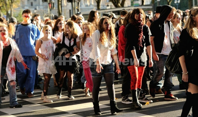 ニュース ライフ フランスにゾンビが大量出没、仮装イベント 2013年10月28日 22:01 発信地:フランス [ ヨーロッパ フランス ] このニュースをシェア ‹ › ❮ 7/15 ❯ 仏北部リール(Lille)で行われた「ゾンビウォーク」のイベントでゾンビの仮装をした人々(2013年10月26日撮影)。(c)AFP/PHILIPPE HUGUEN 画像作成中 ! 【10月28日 AFP】フランス北部のリール(Lille)や南東部のニース(Nice)で前週末、ゾンビに扮(ふん)して街を練り歩く「ゾンビウォーク(Zombie Walk)」が行われた。(c)AFP ライフ 一覧へ> メディア・報道関係・法人の方向け 写真・動画 購入のお問合せ>