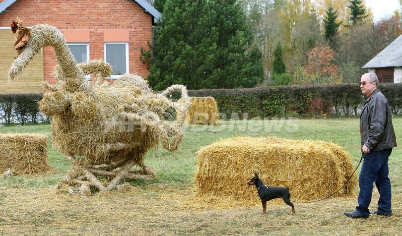 【10月31日 AFP】リトアニア北部パネベジス(Panevezys)近郊のナウジャミエスティス(Naujamiestis)で27日、わらを材料に作り上げられたオブジェを燃やす伝統の祭りが行われ、冬が間近に迫る中、郷愁を誘うこの祭りを見物しようと数千人もの人々が押しかけた。(c)AFP