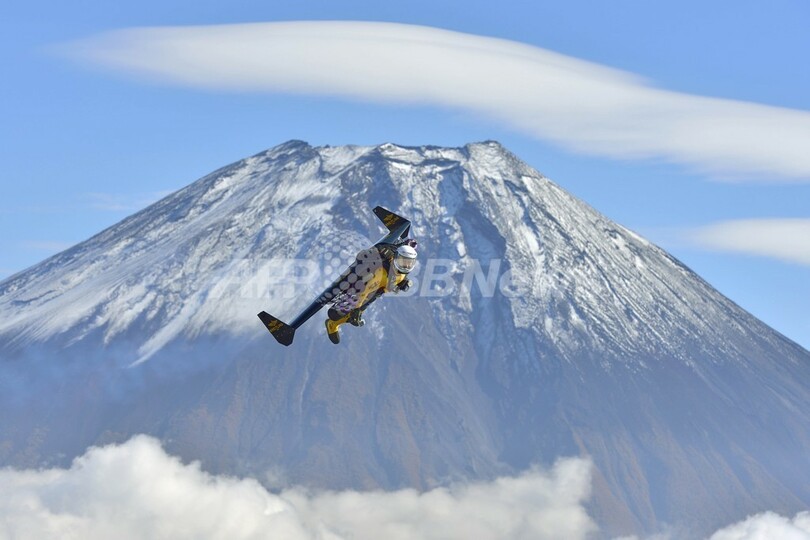 【11月6日 AFP】元戦闘機パイロットのスイス人冒険家、イブ・ロッシー(Yves Rossy)さんが、ジェットパック(ジェットエンジン付きの翼)を背負って富士山(Mt. Fuji)を飛んだ。「ジェットマン(Jetman)」の異名をもつロッシーさんは、重さ60キロのジェットパックを背負い、1週間で富士山の周囲を9周した。(c)AFP