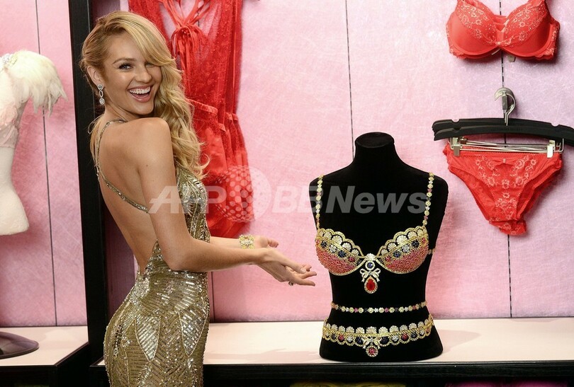 1000万ドル(約9億8600万円)の価値があるというこのセットには、ダイヤモンドやルビー、サファイアといった宝石4200個以上を18金の上にちりばめたブラジャーとベルトが含まれ、ブラの中央には52カラットのルビーが据えられている。今月13日に同ブランドが開くファッションショーでモデルのキャンディス・スワンポール(Candice Swanepoel)が着用する予定だ。(c)AFP
