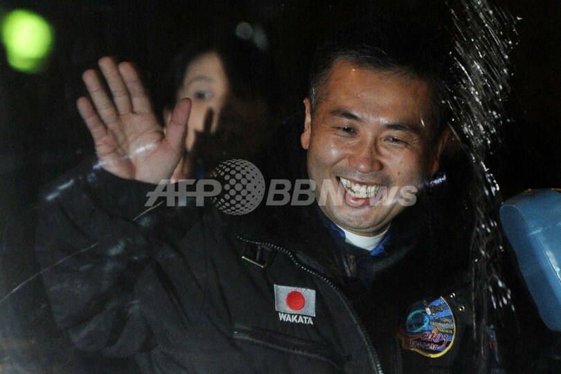 同ミッションでは9日、若田さんと同乗するロシアと米国人宇宙飛行士2人が、火のついていないトーチを持って宇宙遊泳を行う予定。(c)AFP