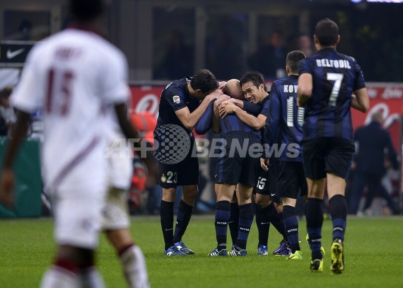 ジョナタンが終盤に担架で運び出されてインテルは10人で試合を終える可能性もあったが、それでも、サネッティのパスを受けたマテオ・コバチッチ(Mateo Kovacic)のアシストから長友がハーフボレーを決め、追加点を挙げた。(c)AFP